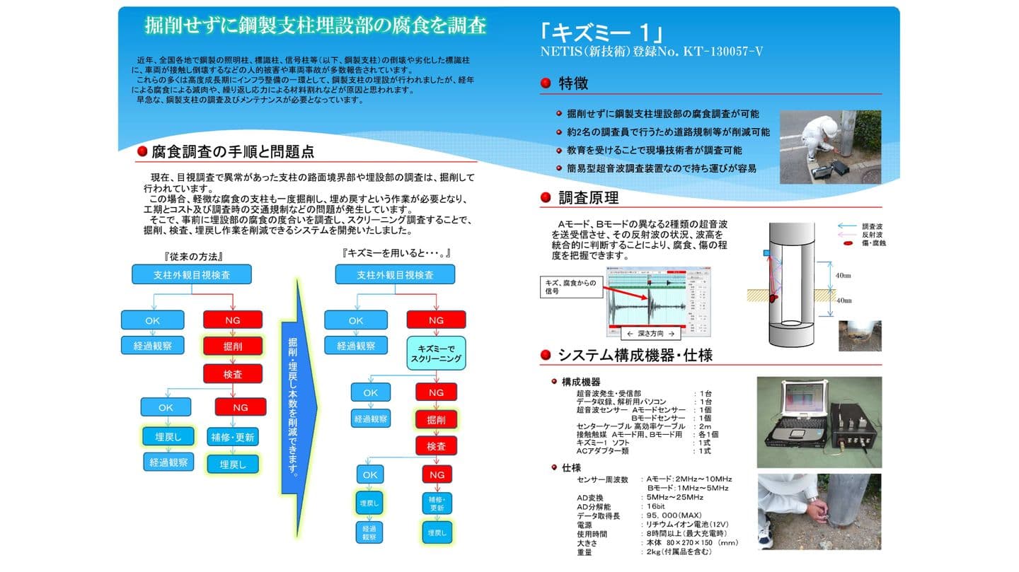 ・掘削せずに鋼製支柱埋設部の腐食調査が可能